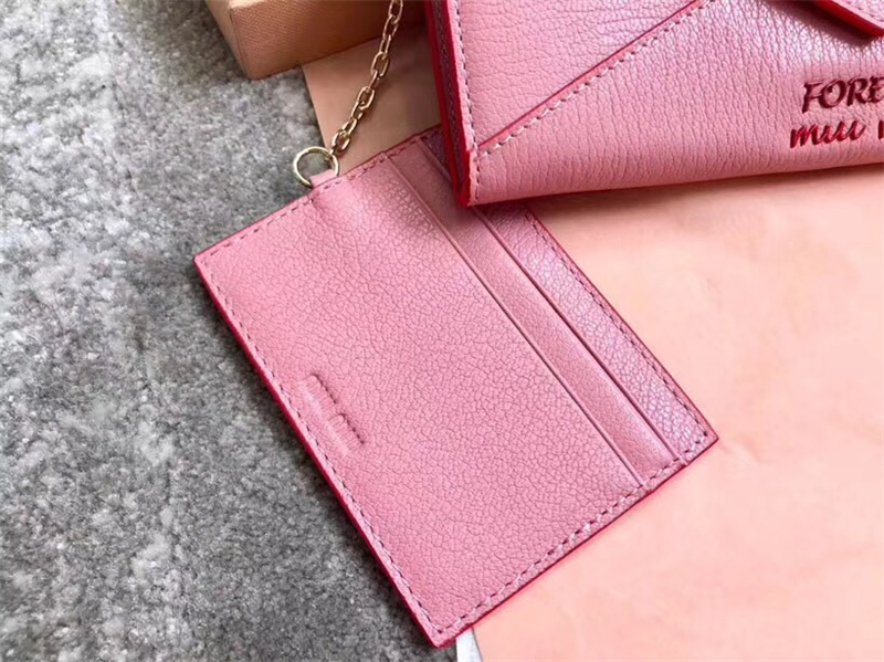 5MH379 MIUMIU 專柜最新 LOVE愛心系列 雙色皮革 錢夾 粉色