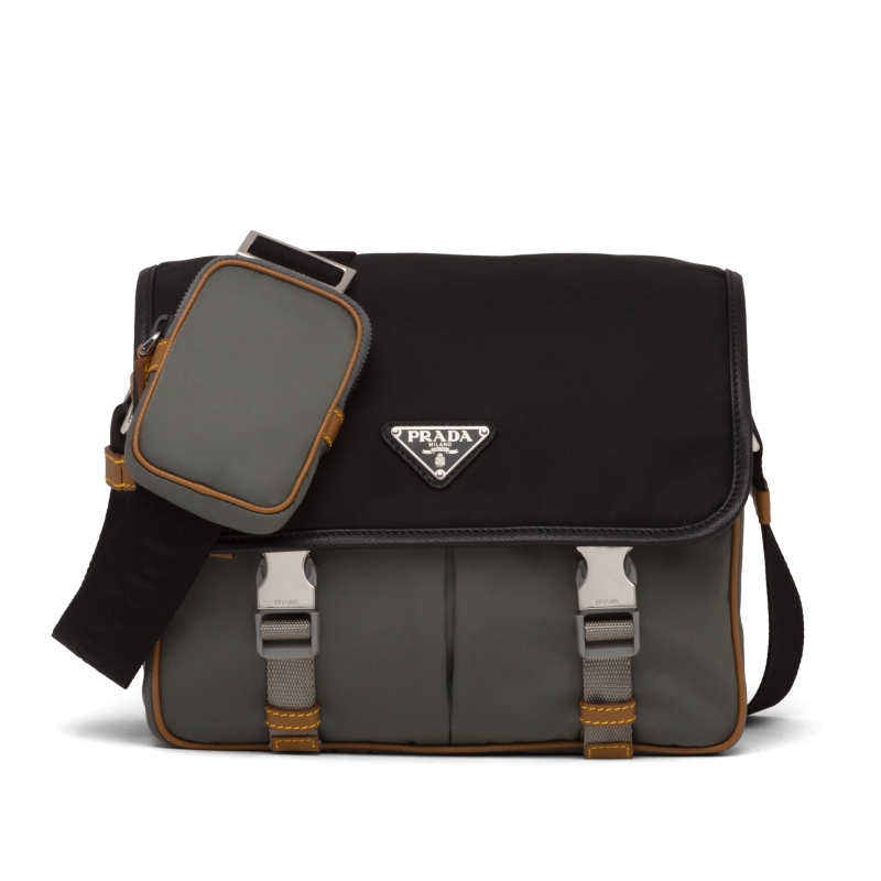 2VD769 Prada普拉達尼龍和 Saffiano 皮革斜挎包郵差包 拼色