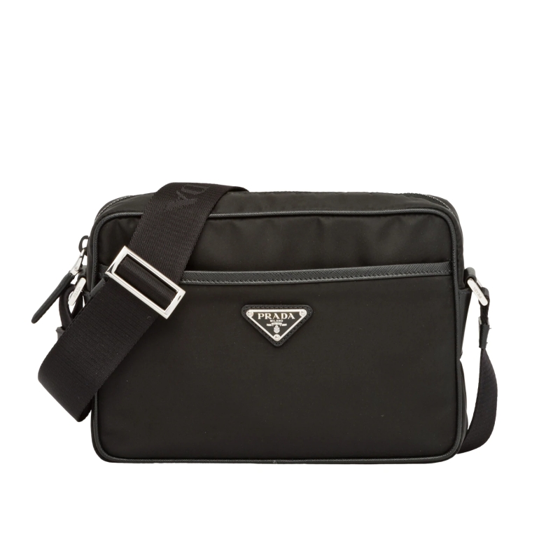 • 2VH048 Prada普拉達尼龍郵差包 普拉達男士單肩包 黑色