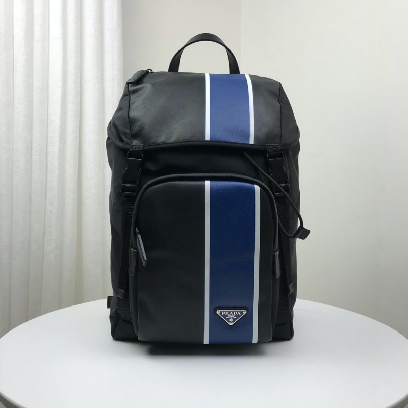 當前位置: 首頁>Prada|普拉達>Prada男包> 2VZ135 Prada普拉達織物和皮革背包 Prada雙肩包 黑配藍