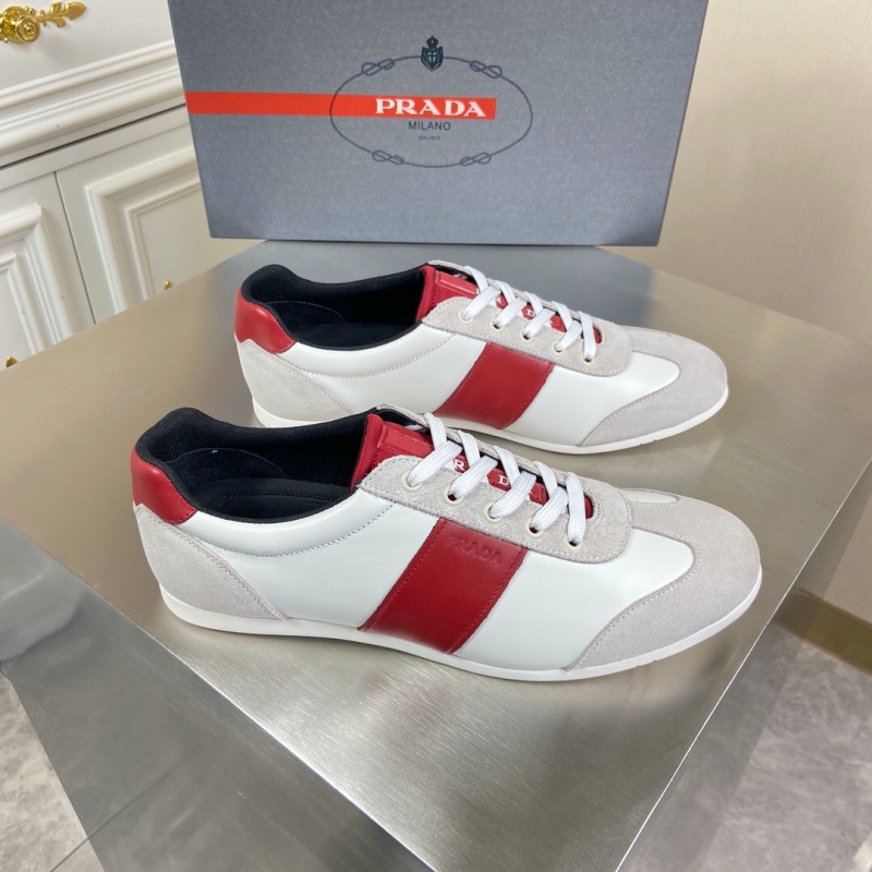• 4E3463 Prada皮革和織物運動鞋 普拉達2020新款休閑運動鞋 白色