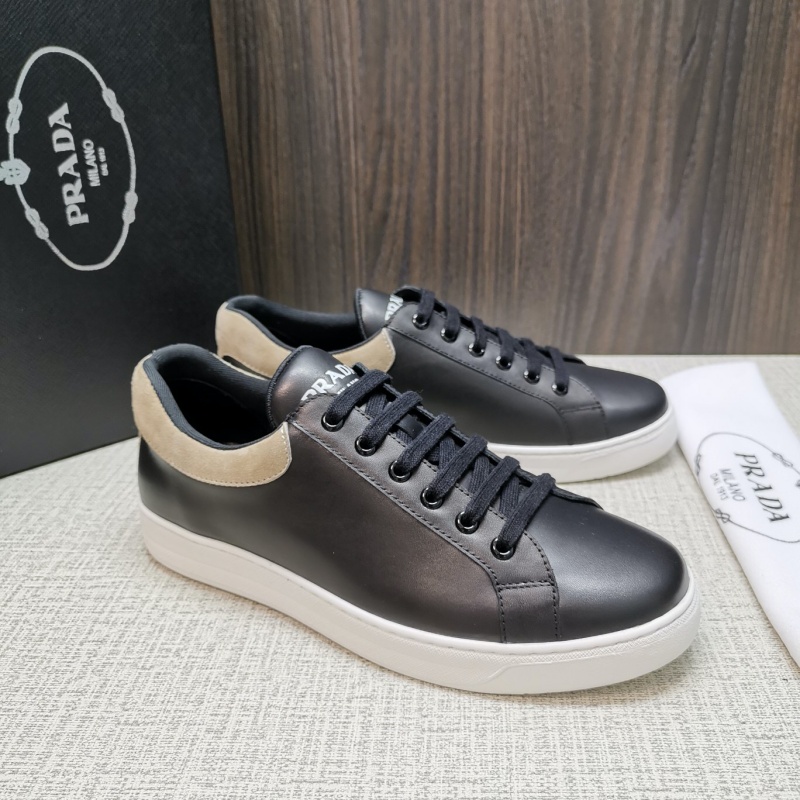 • 4E3544 Prada2020新款男鞋 Prada皮革運(yùn)動鞋 普拉達(dá)休閑板鞋 黑色