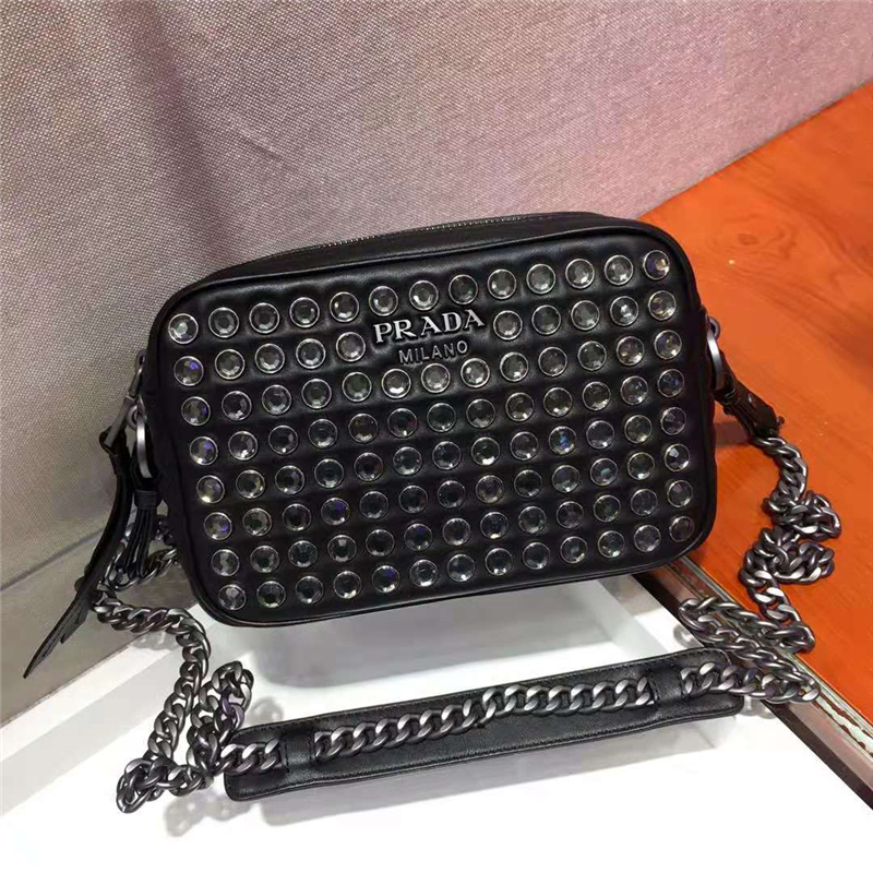 當前位置: 首頁>Prada|普拉達>Prada女包> 1BH103 Prada女包 普拉達女袋 小牛皮 水晶裝飾 普拉達單肩斜跨包 黑色