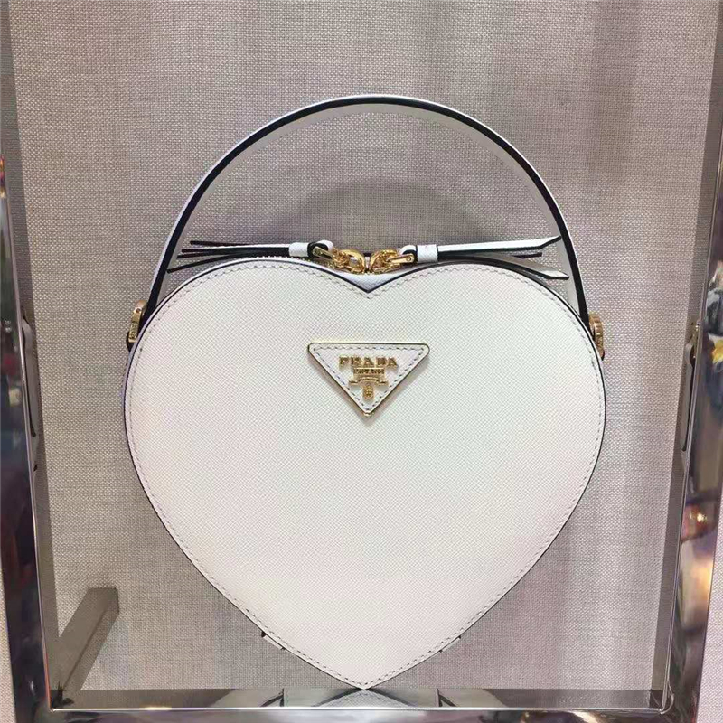 1BH144 Prada Odette女袋 普拉達愛心包 十字紋牛皮 Prada手提袋 白色
