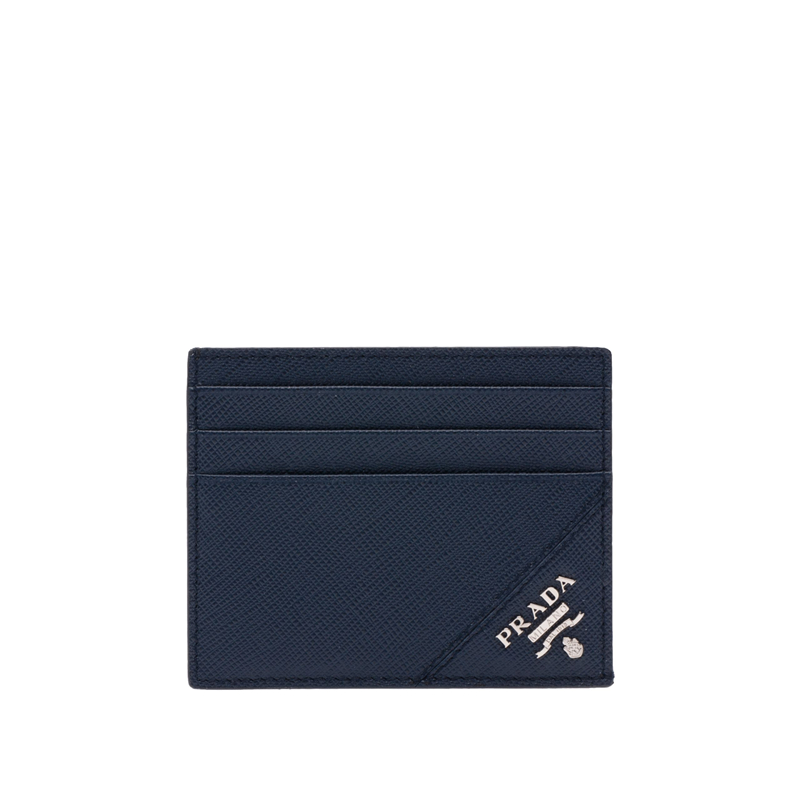 • 詳細介紹:該款卡片夾由Saffiano皮革精制而成,底部角落處點綴有雙色嵌花細節,精致美觀。該款式配有3個卡片插袋,以及1個織物襯里設計的中袋。