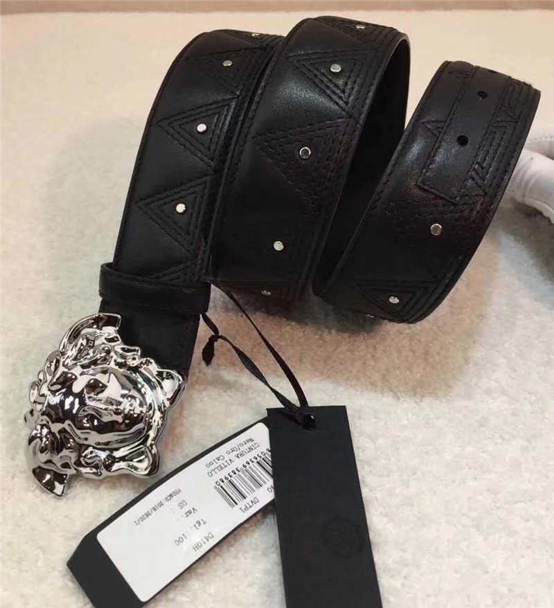 • 范思哲Versce 2017新款皮帶 美杜莎扣頭皮帶 男士腰帶牛皮 黑色銀扣
