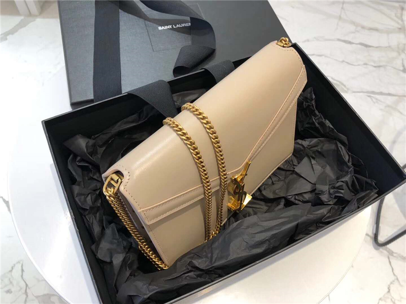 532750 YSL女袋 CASSANDRA 中號 字母標志 拉頭光面 圣羅蘭信封皮包 白色