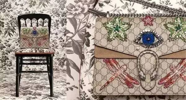 正如酒神可以統(tǒng)治已故的人,讓他們起死回生,這些昆蟲和花卉,植物和動(dòng)物,都栩栩如生立體呈現(xiàn)了出來。(話說Gucci簡直就是因?yàn)榫粕癜氐菚r(shí)尚之巔的,名字起的好還是很重要的)