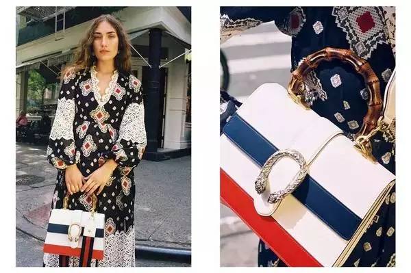 竹節(jié)是Gucci的另一個(gè)經(jīng)典元素,Alessandro Michele把竹節(jié)和酒神包相結(jié)合,再把鏈條換成寬肩帶,那種復(fù)古的時(shí)髦感又上了一個(gè)臺(tái)階。