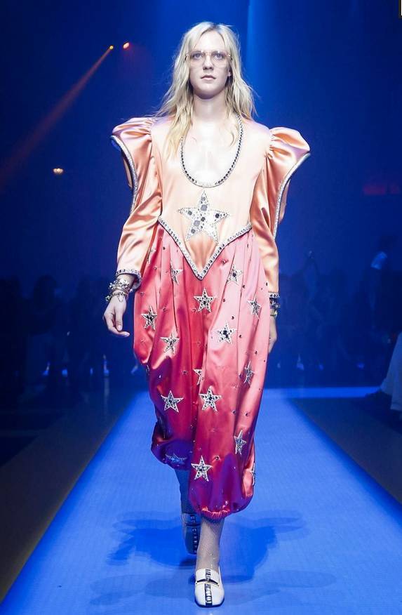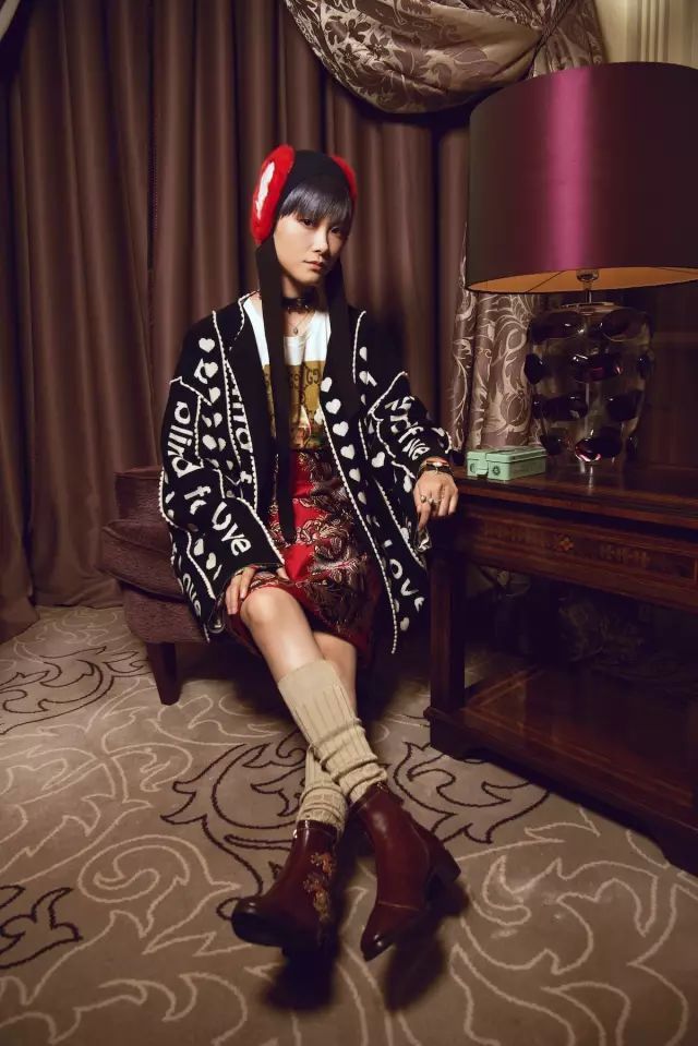 在本季的成衣中女模特頭上的飛碟造型的帽子,像是對(duì)于這個(gè)主題的呼應(yīng)。擺脫于持續(xù)性與標(biāo)準(zhǔn)化帶來(lái)的單調(diào),學(xué)著詩(shī)意地活出自己的精彩,就是本季GUCCI教會(huì)我們的。