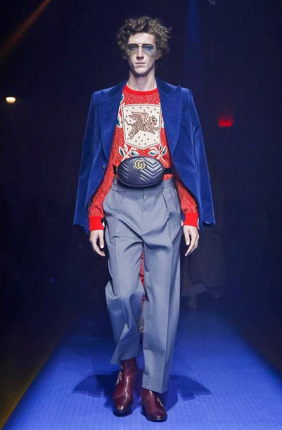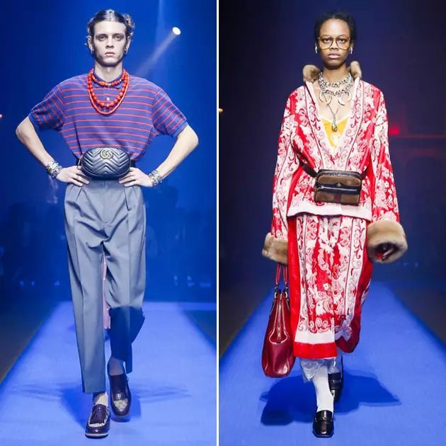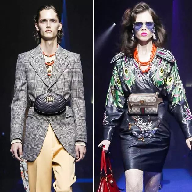 在Gucci 2018春夏系列中,除了逐漸回歸T臺(tái)的大包袋,腰包依舊是這季的主打款式。