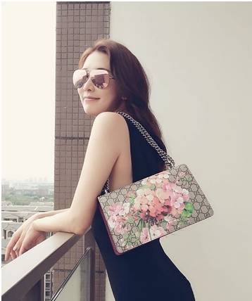 早在它成為眾多女星以及街拍潮人的迷妹前,全智賢就是最先背它出門的那一批女星,作為Gucci的代言人,女神和酒神包的氣質(zhì)超配噠。這款酒紅色麂皮絨點(diǎn)綴的花卉款明星潮人們背的最多。現(xiàn)在也就數(shù)這款和蟲鳥款最火。