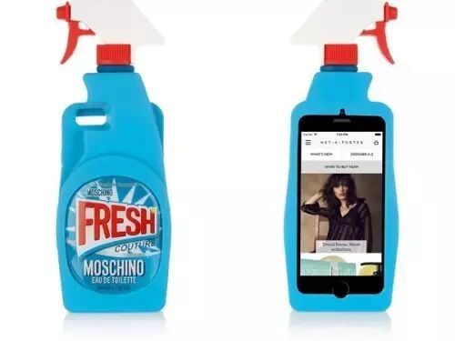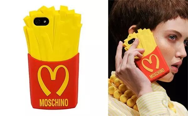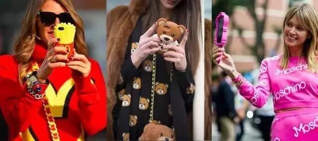 當然,在手機殼上最會玩的還要數Moschino,也是國際手機殼爆款的前·頭把交椅。他們每一季的手機殼都讓人特別期待,在過往幾季玩了薯條、清潔劑、芭比梳妝鏡,總之腦洞怎么大怎么來。