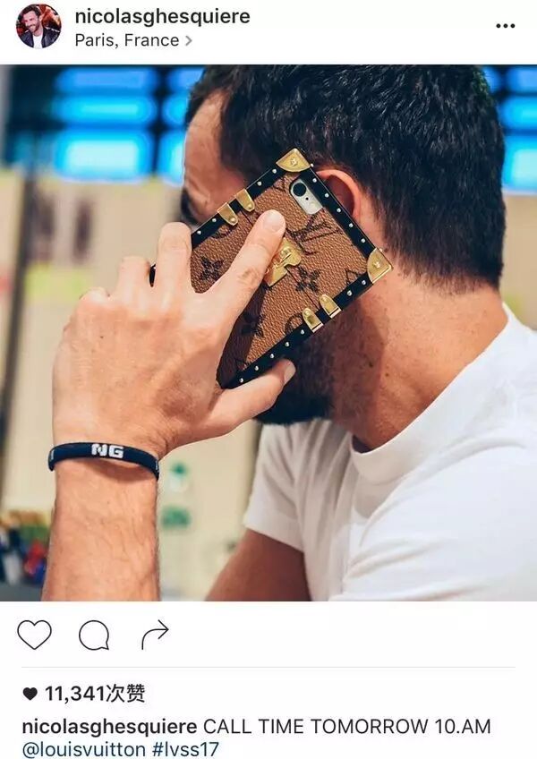 在大秀開始前,LV的創意總監Nicolas Ghesquière早就迫不及待地在個人的ins上提前公布了這一單品。圖中的手機殼Monogram花紋,外形像小箱子Petite Malle。