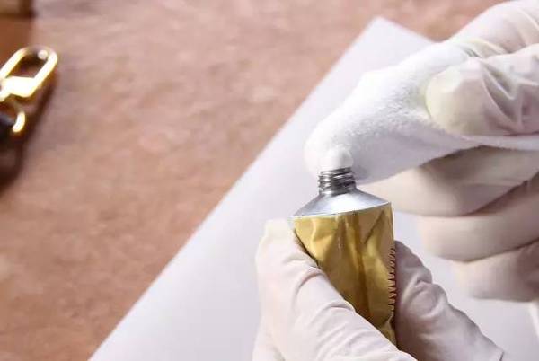 但是對于像Dior這款淺金色的鍍色養(yǎng)護,不但需要更加的小心和仔細,還需要均勻力道、溫柔又不猶豫的鍍色操作,動作稍有遲疑,黃金色就會著在本來應(yīng)該淺金的金屬表面,有些時候可以再拋光重新來過,但有時就無法補救。