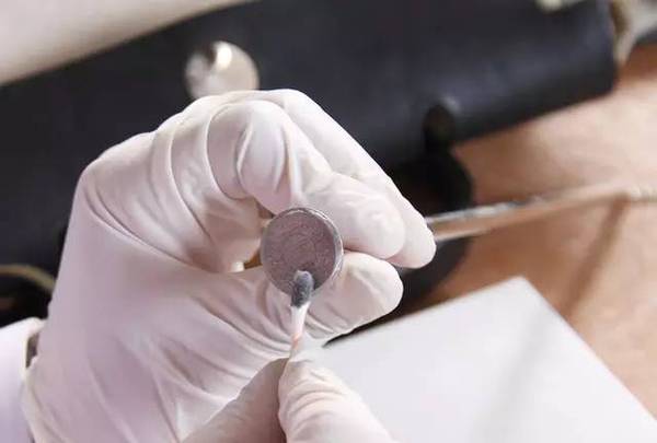 ①用滴管滴取專用的電鍍液于棉簽上,這里就比較神奇了,看似透明的液體,其實是一種里面含有金離子的昂貴鍍液,現(xiàn)在看上去就像護膚的精華,但當(dāng)與金屬和電流接觸時就……