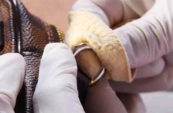 在專用拋光布的打磨下,把金屬表面斑駁的鍍金全部清除掉,使五金表面光滑,也是為了讓之后的鍍色可以更具光澤。