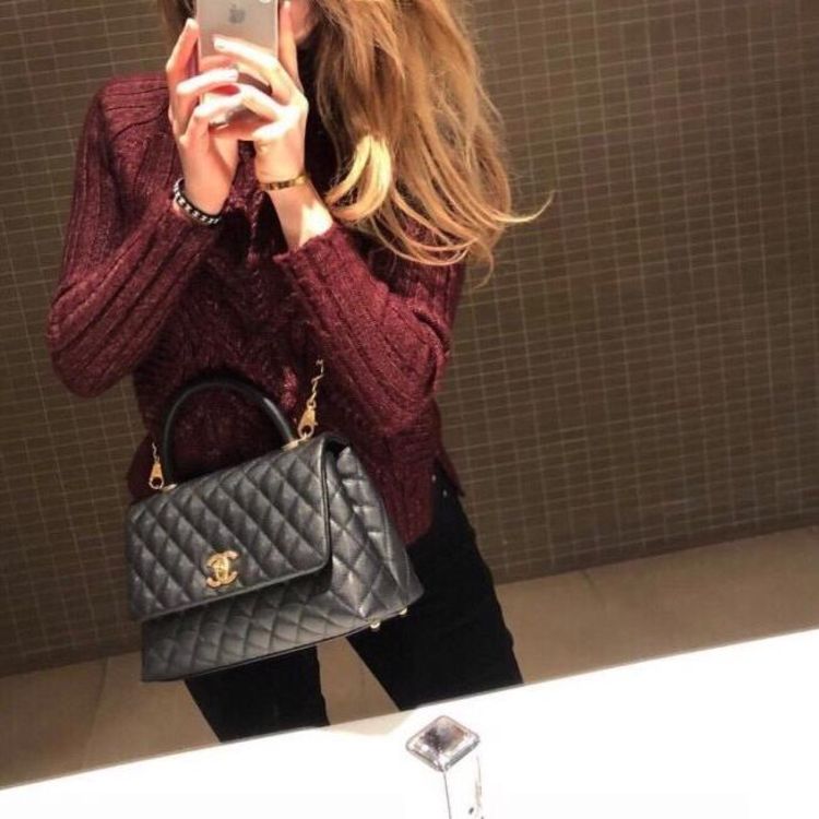 這款以Coco小姐本尊命名的Coco handle bag,它是香奈兒包包為數不多的有手柄的包款,半圓形手柄配上單肩鏈條,是這個包最出彩的部分,背在身上優雅,提在手上復古,這款包不管什么顏色什么大小背在身上都是全身搭配的點睛之筆,沒有任何季節的束縛,也沒有任何場合的局限。