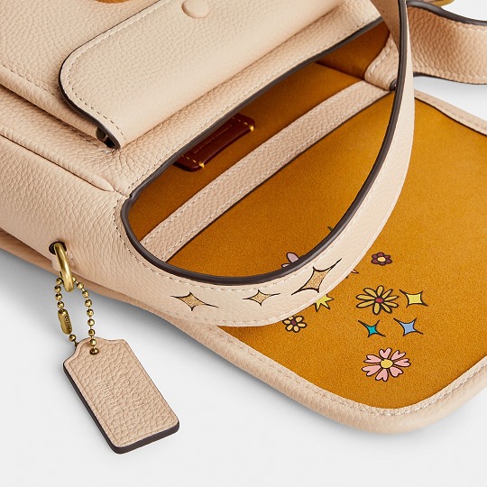 宇宙系列呈現(xiàn)的是太陽(yáng)和月亮同時(shí)懸掛在天上的夢(mèng)幻場(chǎng)景,瓢蟲在跳舞,衛(wèi)星在空中旋轉(zhuǎn)。Riya 背包采用象牙白色棒球手套鞣制皮革打造而成,搭配行李箱式頂部手柄和經(jīng)典 Signature C 字母旋鎖,內(nèi)部抽繩以及搭扣閉合設(shè)計(jì)讓安全感加倍。
