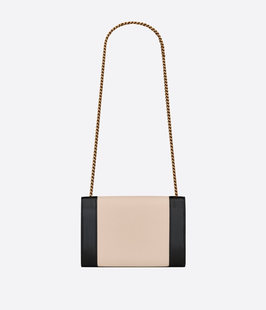 Kate 小號(hào)肩背包以拼色風(fēng)格亮相,采用焦糖色麂皮、奶茶色或白色納帕小羊皮制作翻蓋,黑色或紅色亮面小羊皮拼接邊框等包身細(xì)節(jié),有如古典畫(huà)框般優(yōu)雅精致。