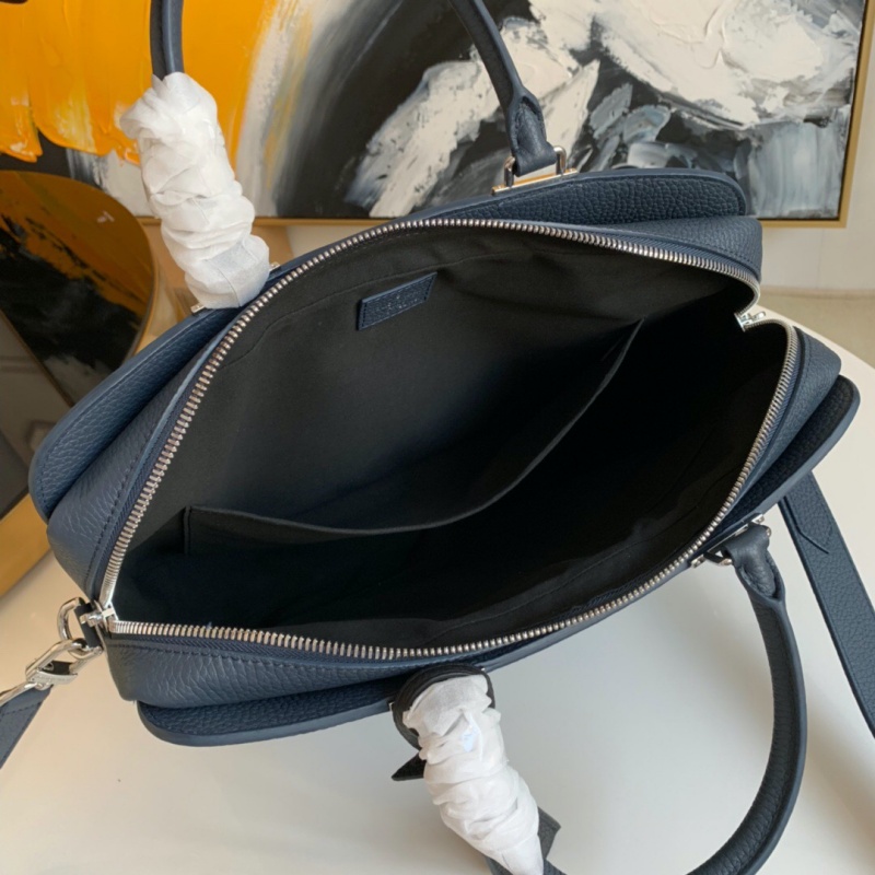 • M55228 LV ARMAND 中號公文包 Taurillon 粒面牛皮手提包 海軍藍